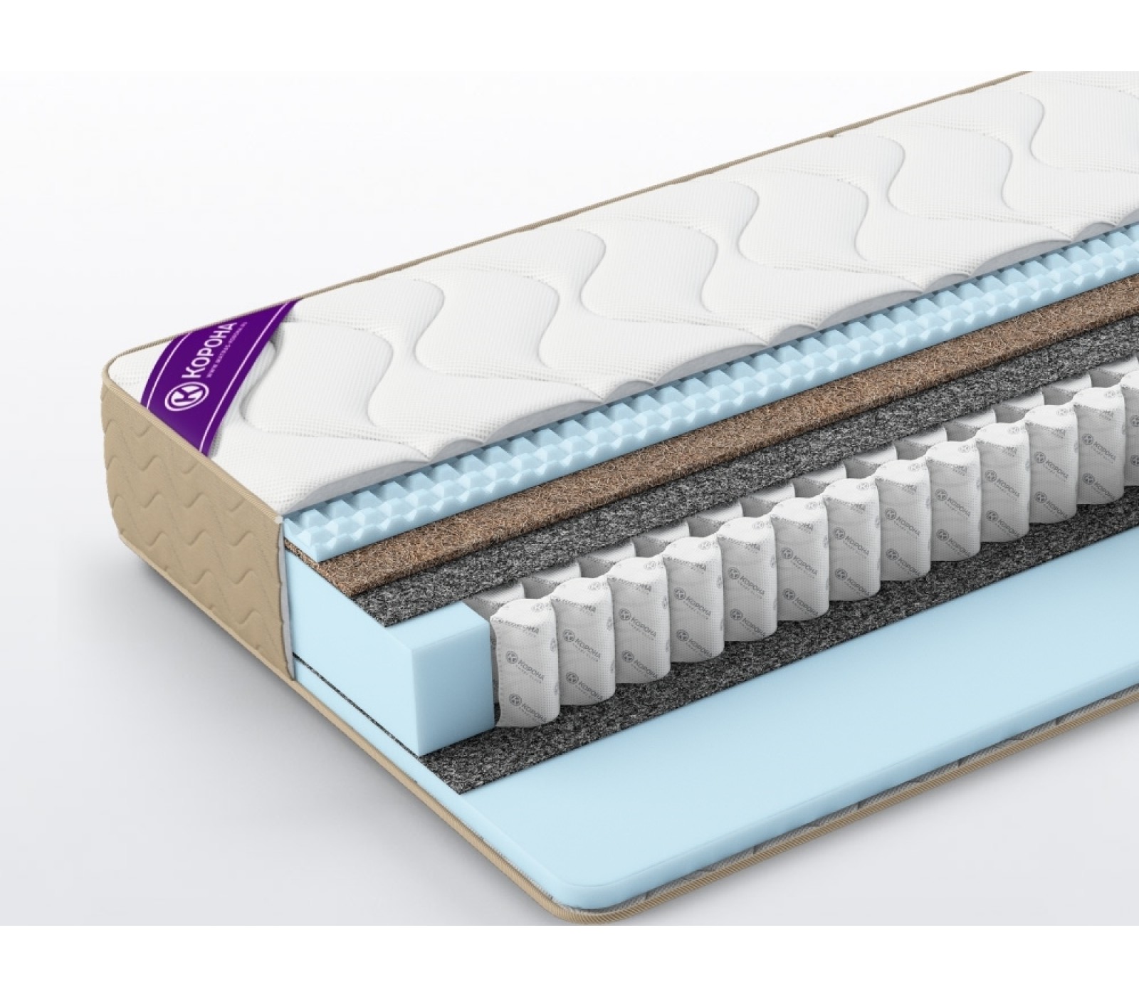 - Бикокос – 10 мм. Полусинтетический материал на основе кокосовых волокон для упругости и жесткости матраса.