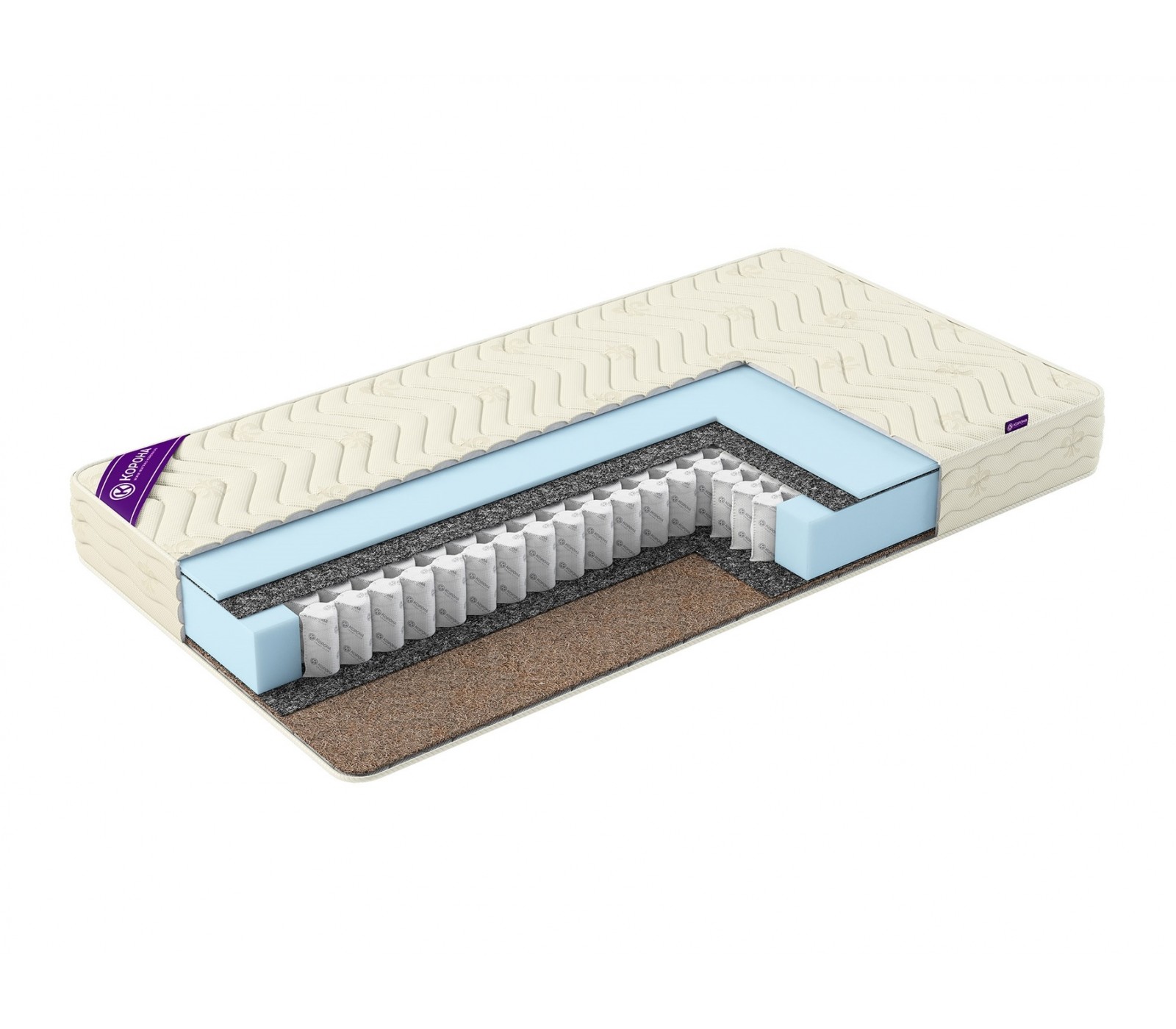 Недорогой популярный матрас на основе пружинного блока TFK 500 с разной жёсткостью сторон. Применение натуральной кокосовой койры с одной стороны обеспечивает высокую жесткость и эффективное распределение весовой нагрузки по спальному месту. Вторая сторона за счет сочетания термовойлока с эластичным пенополиуреатном более мягкая и подстраивается под анатомическую форму тела пользователя.